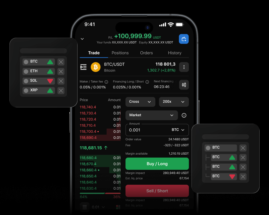 Flexible margin modes, precise charts powered by TradingView, and full control over your positions. Built for those who know what they want from the market.